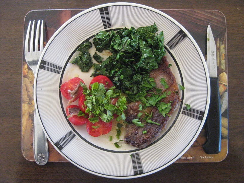 - meat and vegetables: (pan fried) salmon, or chicken legs or chicken livers or chicken breasts stuffed with cheese and lightly battered with egg and rice/lupin flour or (grilled) meat - with cooked vegetables or salad.